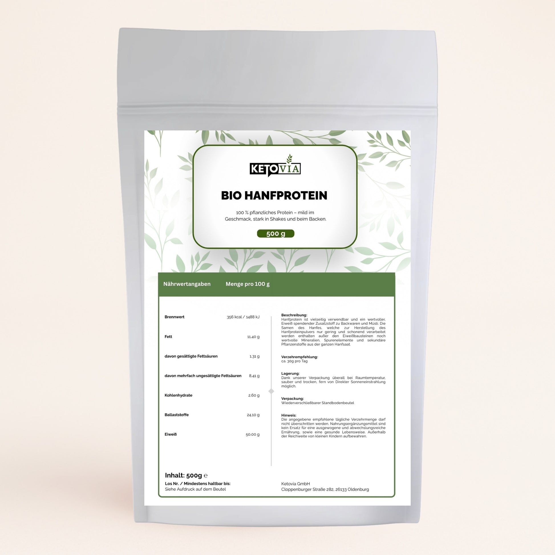 Bio Hanfprotein ist ein naturbelassenes Pflanzenprotein aus den Samen des Hanfs. Es wird schonend verarbeitet und liefert neben hochwertigem Eiweiß auch Ballaststoffe, mehrfach ungesättigte Fettsäuren und Mineralstoffe. Das feine Pulver eignet sich ideal für Shakes, Smoothies, Bowls oder als Backzutat.