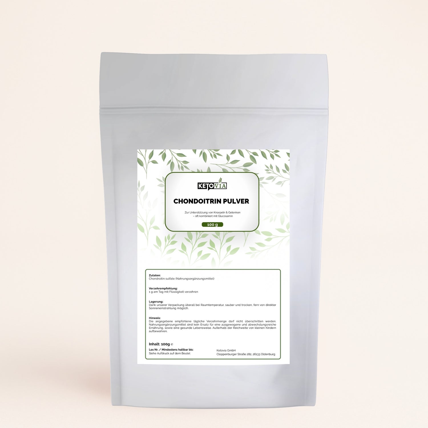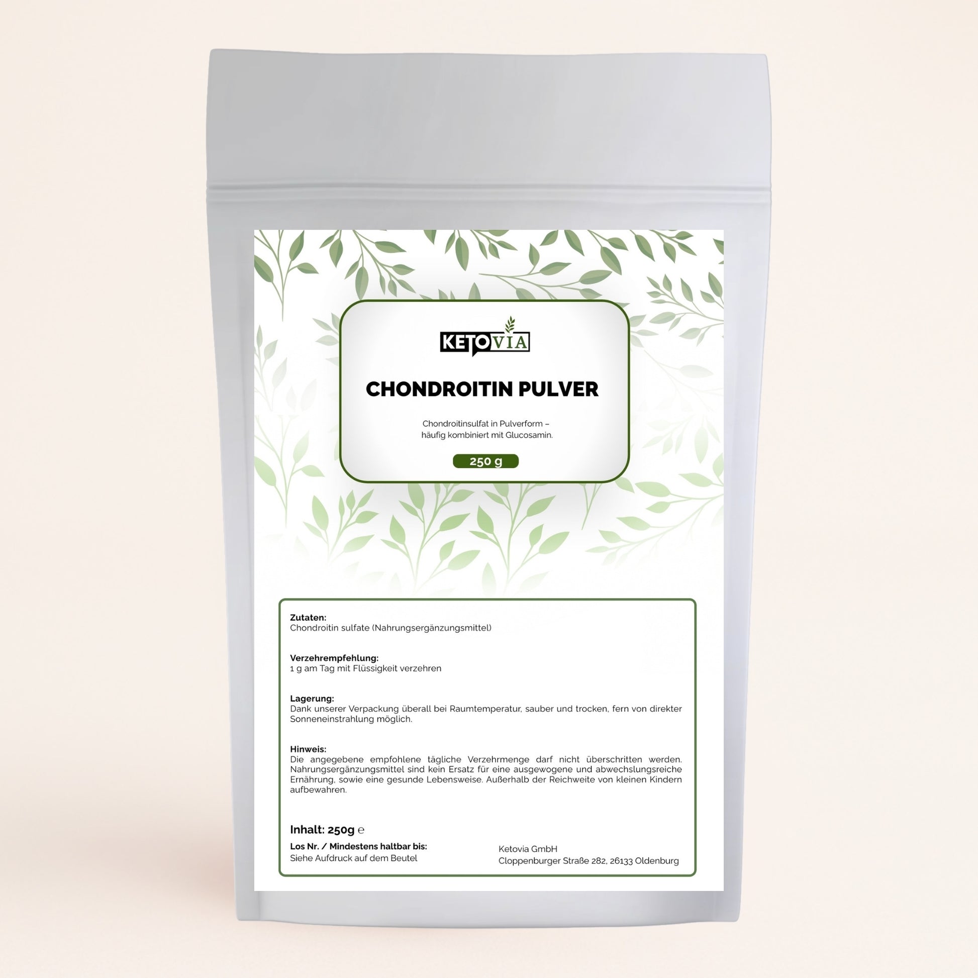 Chondroitin Pulver – hochwertiges Nahrungsergänzungsmittel zur Unterstützung einer bewussten Ernährung. Chondroitin ist ein natürlicher Bestandteil von Bindegewebe, Knorpel und Gelenken und wird häufig in Kombination mit Glucosamin verwendet. Das Pulver ist geschmacksneutral und lässt sich einfach in Flüssigkeit einrühren.