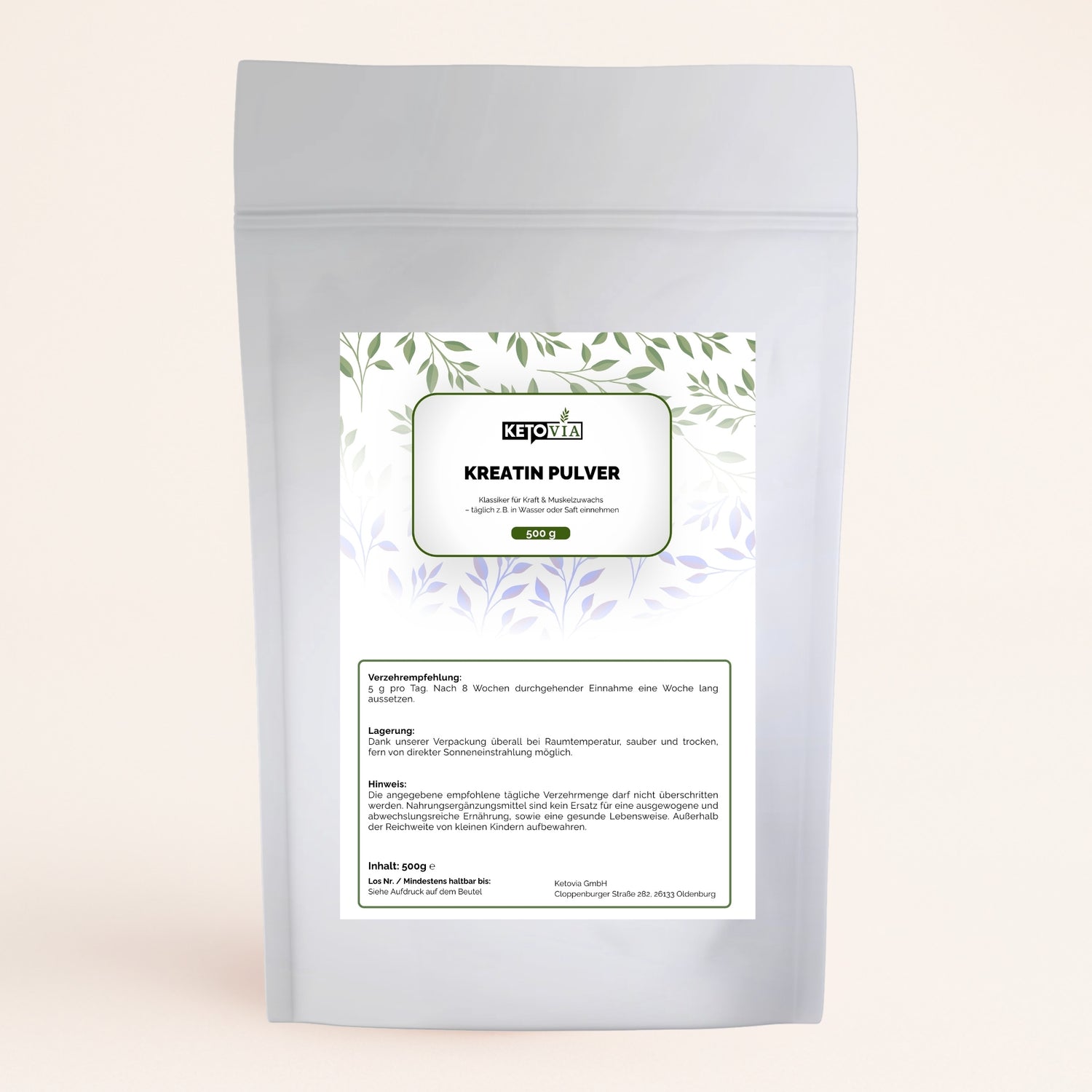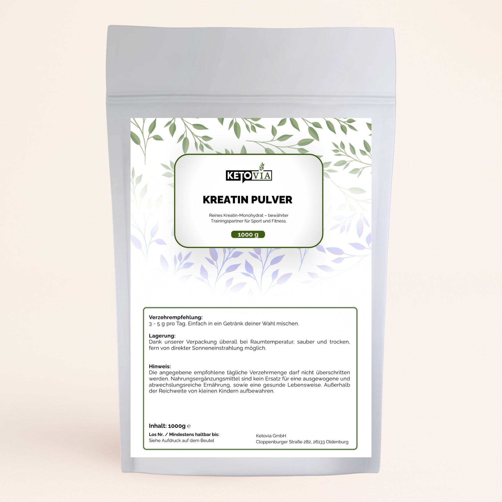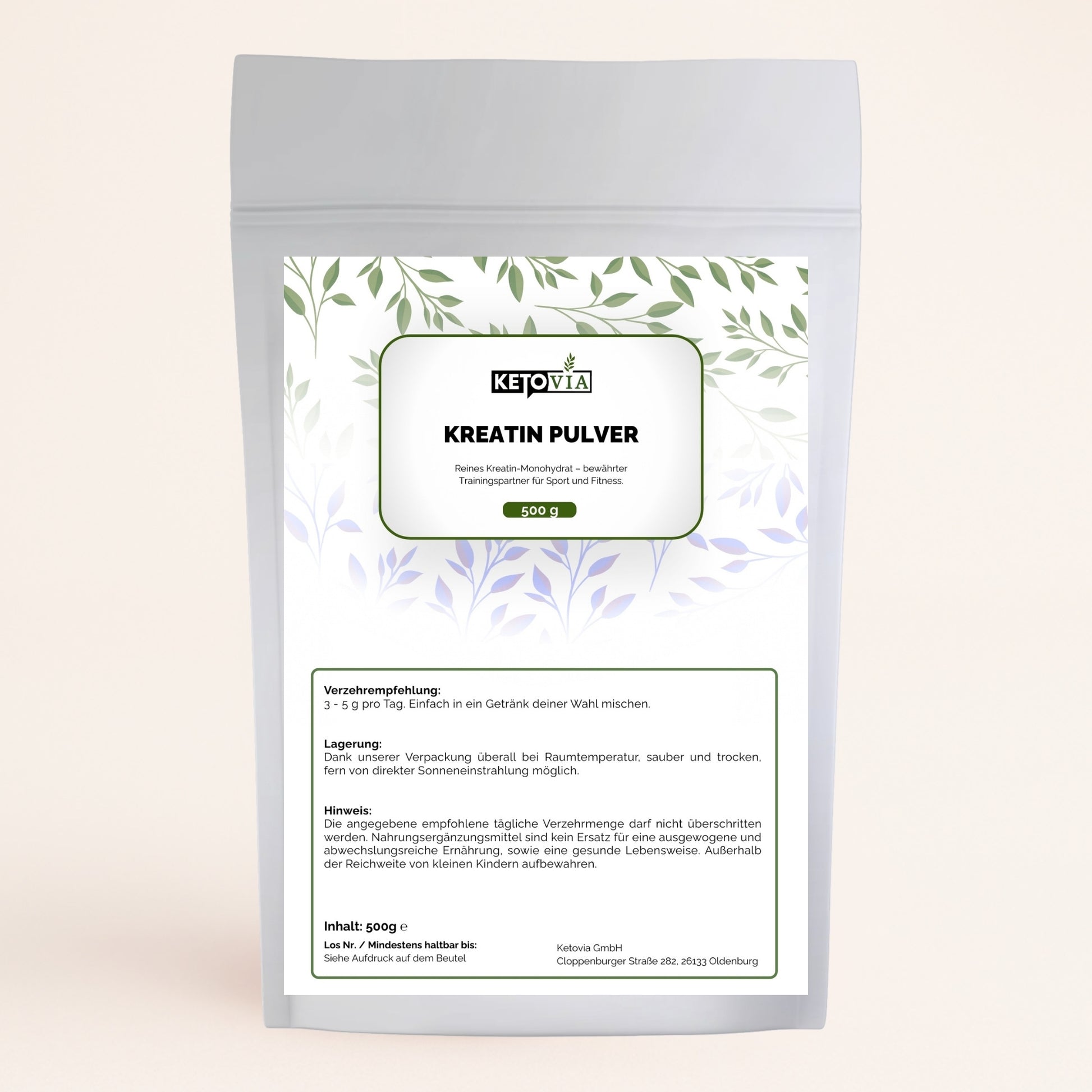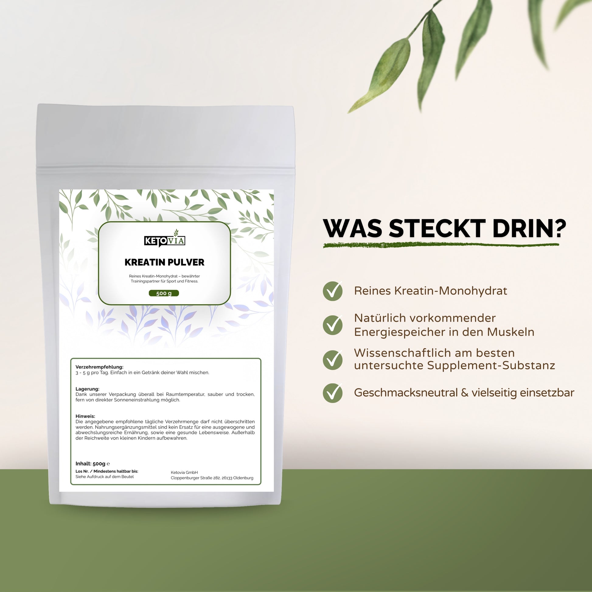 • 3 g Kreatin Monohydrat pro Portion – optimale Dosierung für Trainingsergänzung
