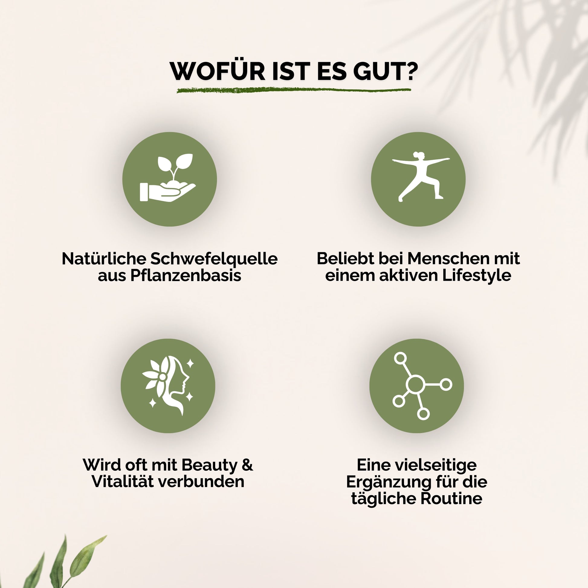 • Quelle für organischen Schwefel – wichtig für Gelenke, Bindegewebe & Hautstruktur