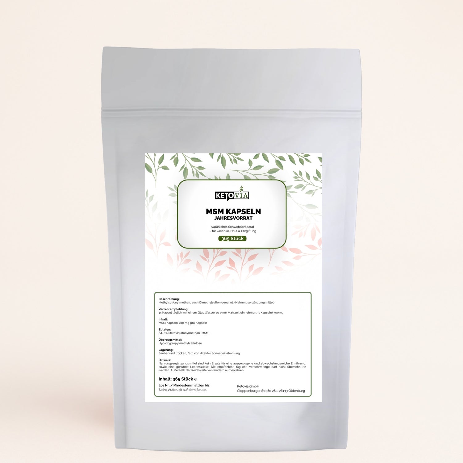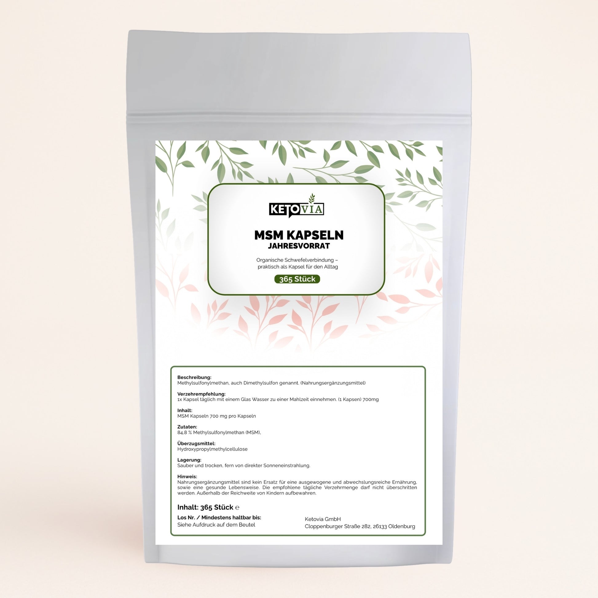 Die MSM Kapseln von Ketovia bieten dir natürliche Schwefelpower für Alltag & Lifestyle: nur eine Kapsel täglich – und du unterstützt Gelenke, Haut, Bindegewebe & Regeneration rundum.