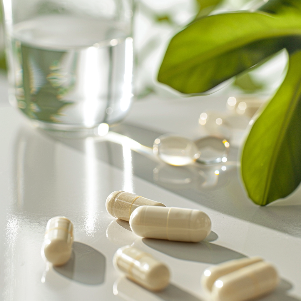 Unzerkaut mit Wasser, am besten zu einer Mahlzeit, einnehmen. So unterstützt du beste Verträglichkeit und Aufnahme.