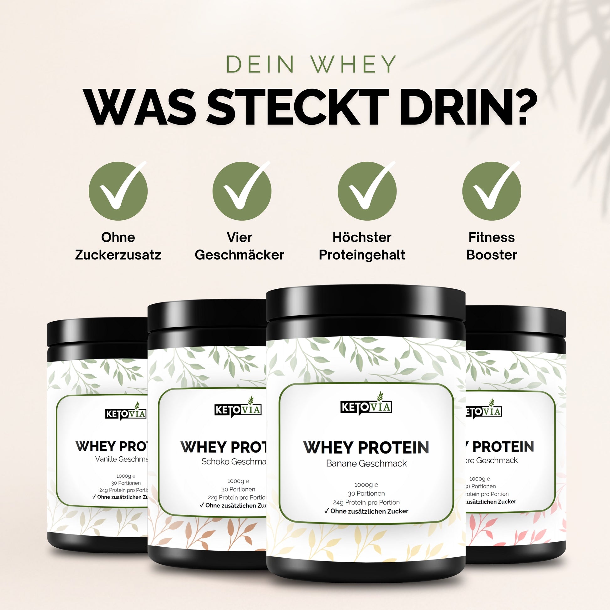 Whey Protein ist ein hochwertiges Milchprotein, das alle essentiellen Aminosäuren enthält – insbesondere Leucin – und schnell vom Körper aufgenommen wird.